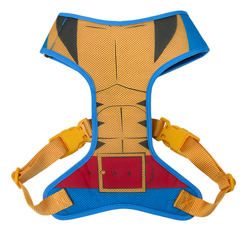 O peitoral Air Mesh Ajustável Marvel Wolverine possui o design da roupa do personagem.