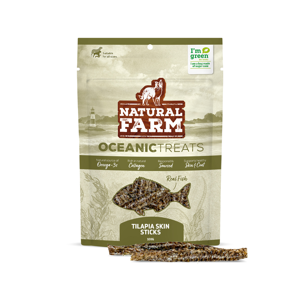 A fazenda ficou pequena para a Natural Farm! Agora é a hora de explorar novos mares com os Oceanic Treats, petiscos de peixe desidratado para o seu Pet. Com qualidade superior, cada pacote contém um único ingrediente, sem adição de qualquer produto químico, ultra processado ou substância prejudicial à saúde dos nossos melhores amigos.